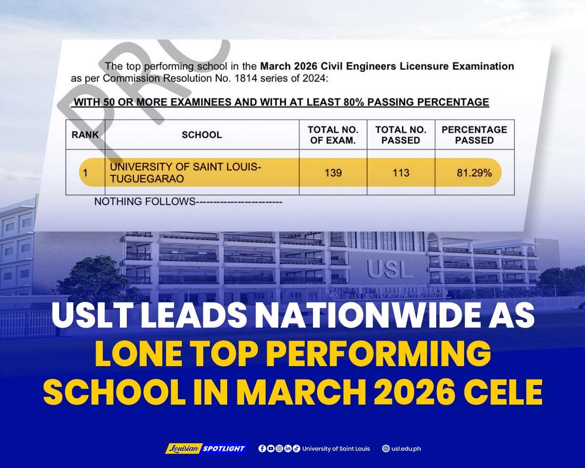 The University of Saint Louis Tuguegarao (USLT) registered 60 new Certified Public Accountants (CPAs) in the October 2025 Certified Public Accountants Licensure Examination (CPALE).